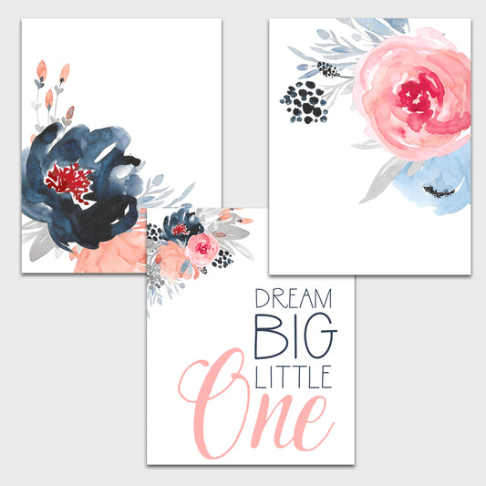 Dream Big Little One Nursery Watercolor Floral Prints