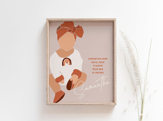 Boho Baby Girl Birth Stats Print - Earthy Pink with Rainbow
