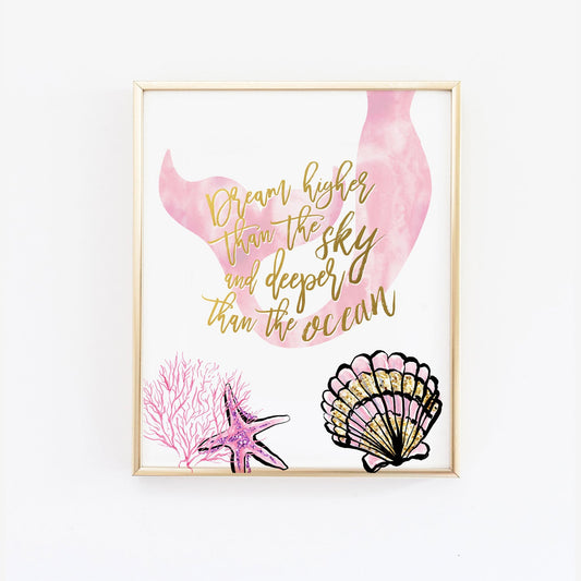 Mermaid Wall Art - Dream higher than the sky and deeper than the ocean in pink
