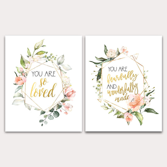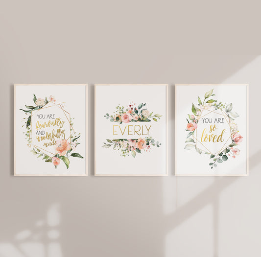 Custom Name Floral Nursery Wall Prints - I am so loved, Fearfully and Wonderfully Made