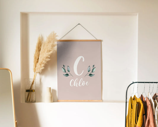 Earthy Muted Name Print with Leaves