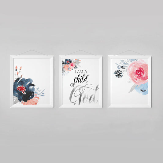 Floral Customized Nursery Wall Art with Baby Stats and Name - Set of three
