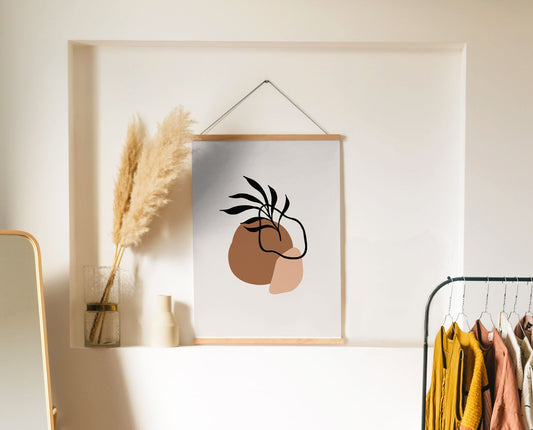 Mid Century Abstract Neutral Navy Taupe Shapes Art