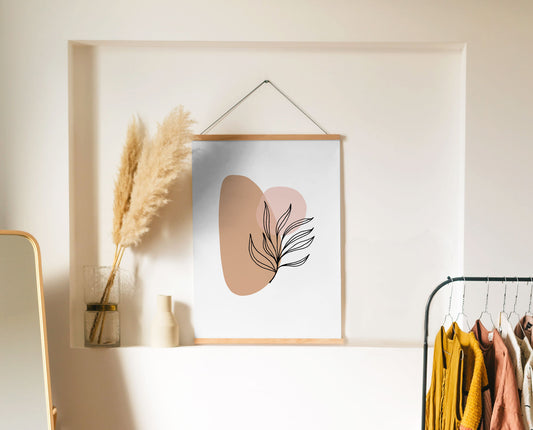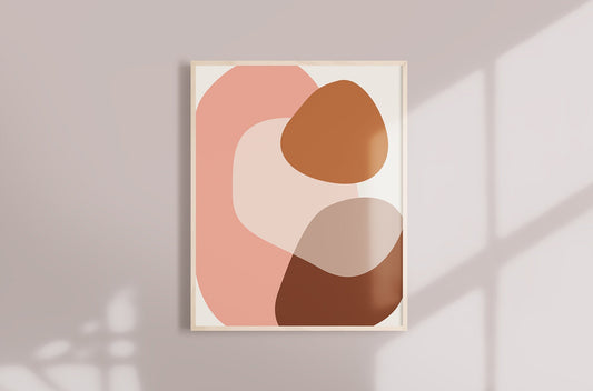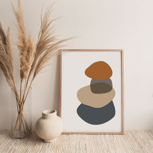 Mid Century Abstract Neutral Navy Taupe Shapes Art