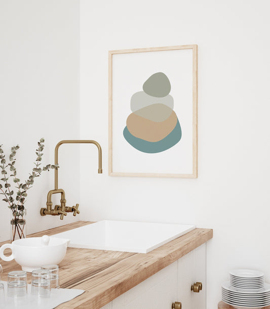 Abstract Bathroom Wall Art in Teal Blue and Sage Green