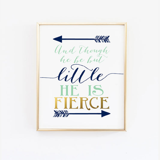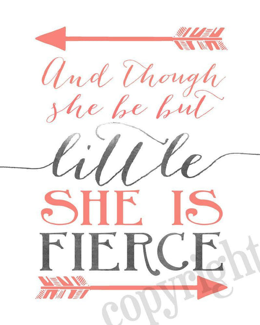 And though she be but little - Let her sleep Nursery Prints - Teal Coral