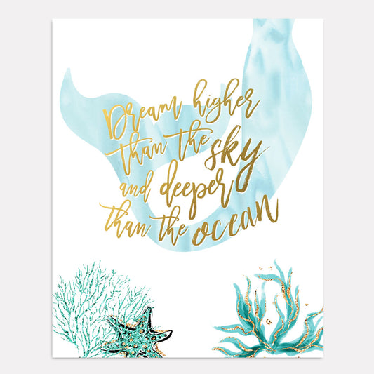 Mermaid Wall Art - Dream higher than the sky and deeper than the ocean in teal