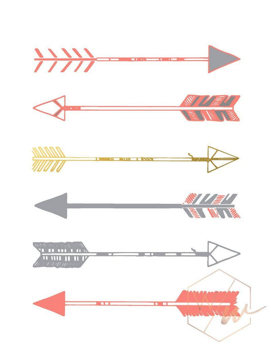 Chevron Arrows Print - Pink Mint and Gold Wall Print