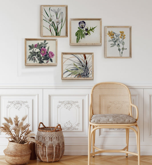 Floral Vintage Gallery Wall Art - Set of five 8x10