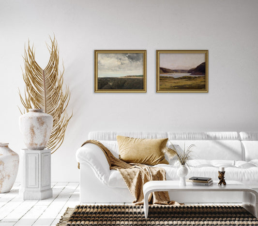 Inlet Harbour and Shoreline Vintage Wall Art - Set of Two