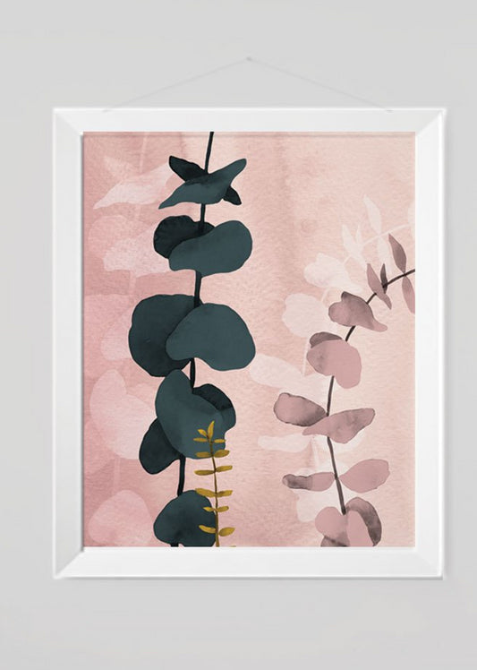 Eucalyptus Branch Pink Modern Abstract Wall Art