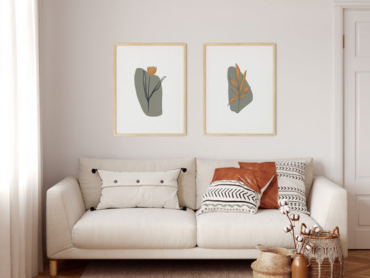 Modern Green Botanical Wall Prints - Set of Two