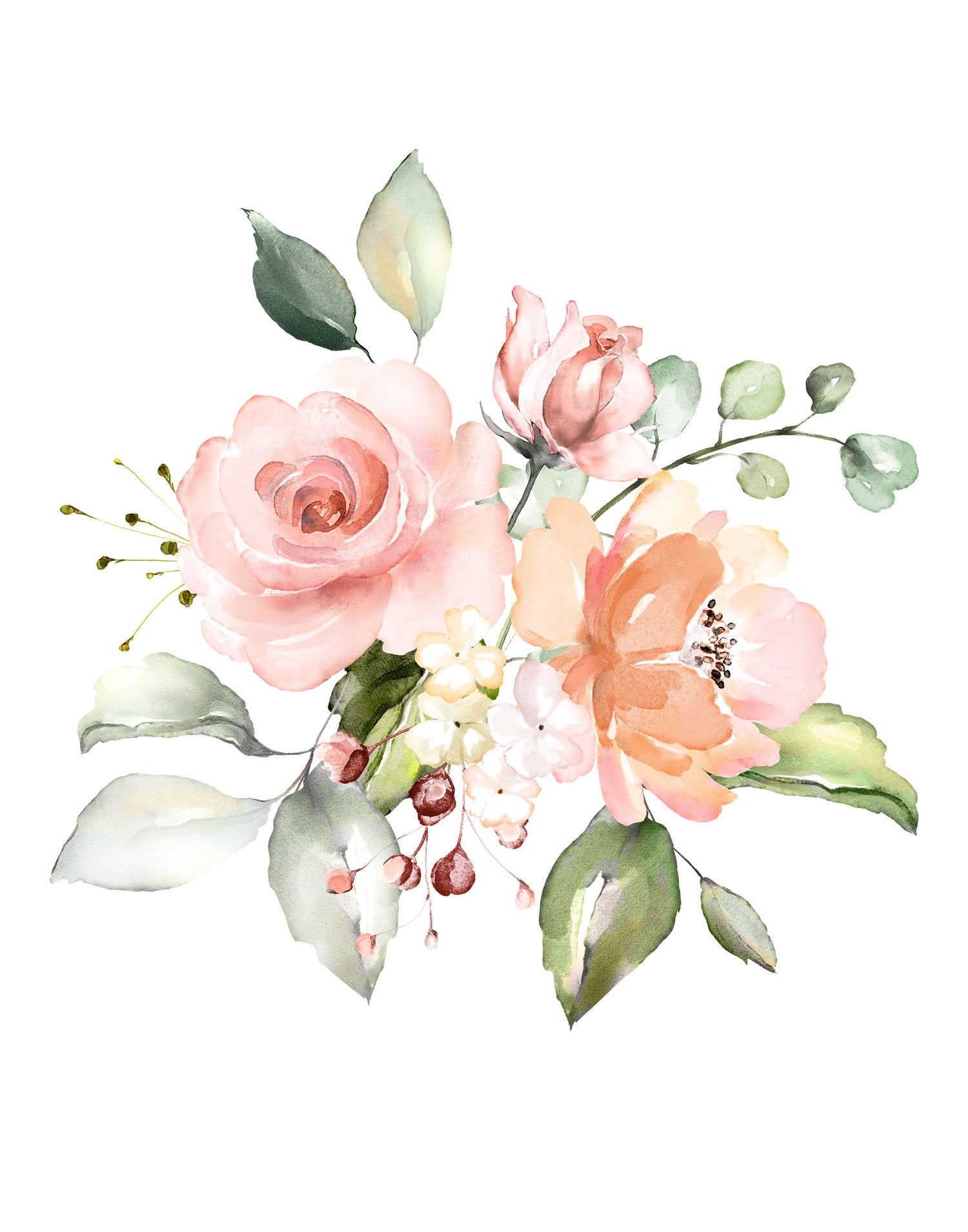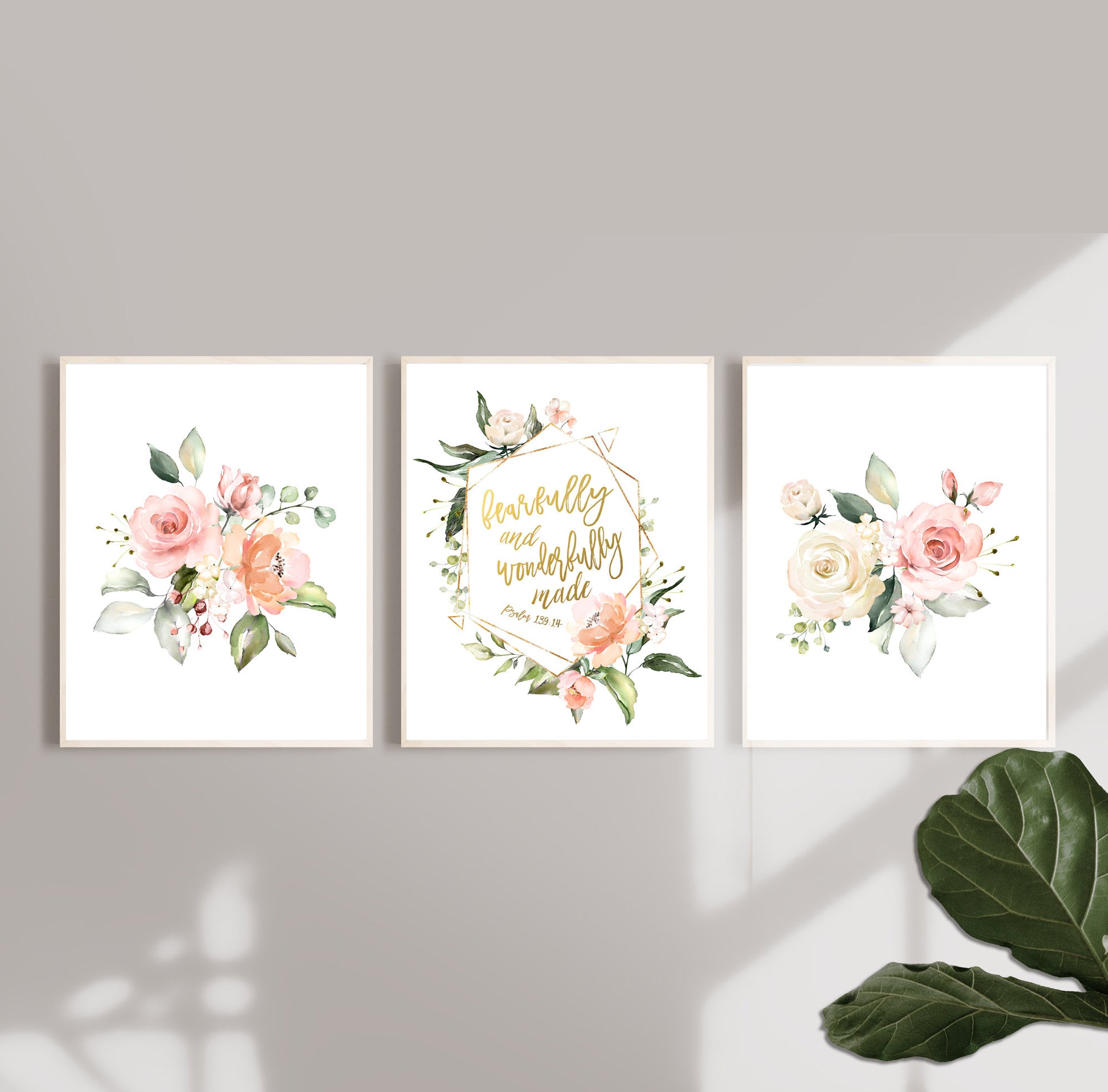 This set with three wall prints will finish off your baby girl's nursery decor perfectly. The simple but impactful watercolor florals are in pink, peach and greens. Summery, soft and sophisticated. This color scheme could match many different palettes for a nursery.