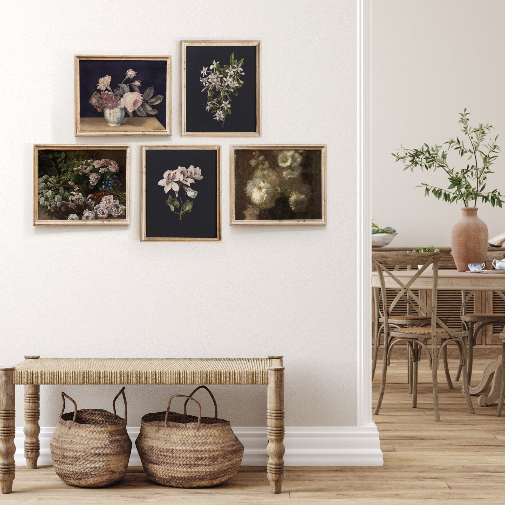 Easily create a gallery wall with a combination of vintage floral artwork. Just get the frames and hang! By purchasing your prints in a pre-made gallery you are getting 20% off the regular vintage print price (discount already accounted for in the price).