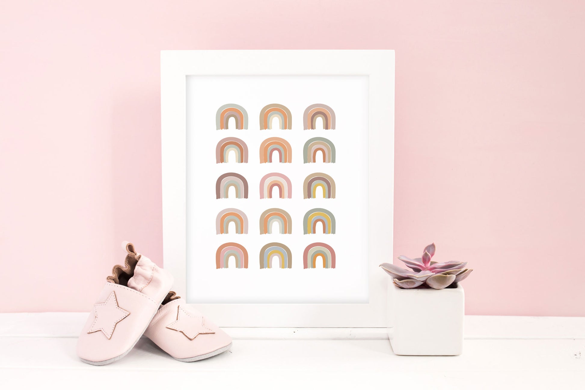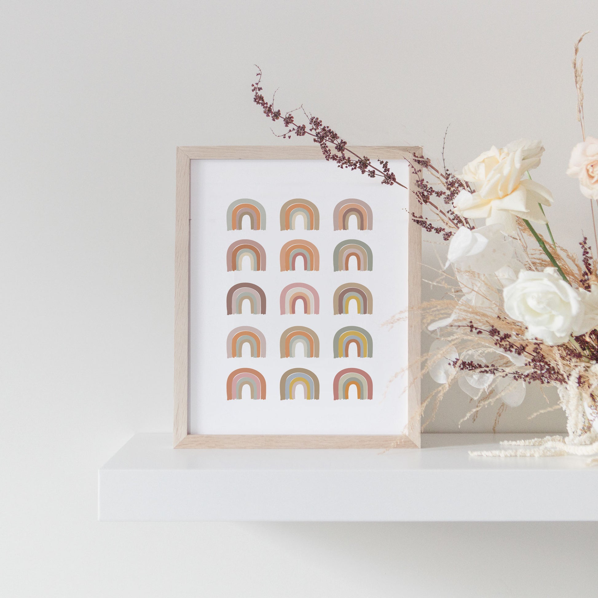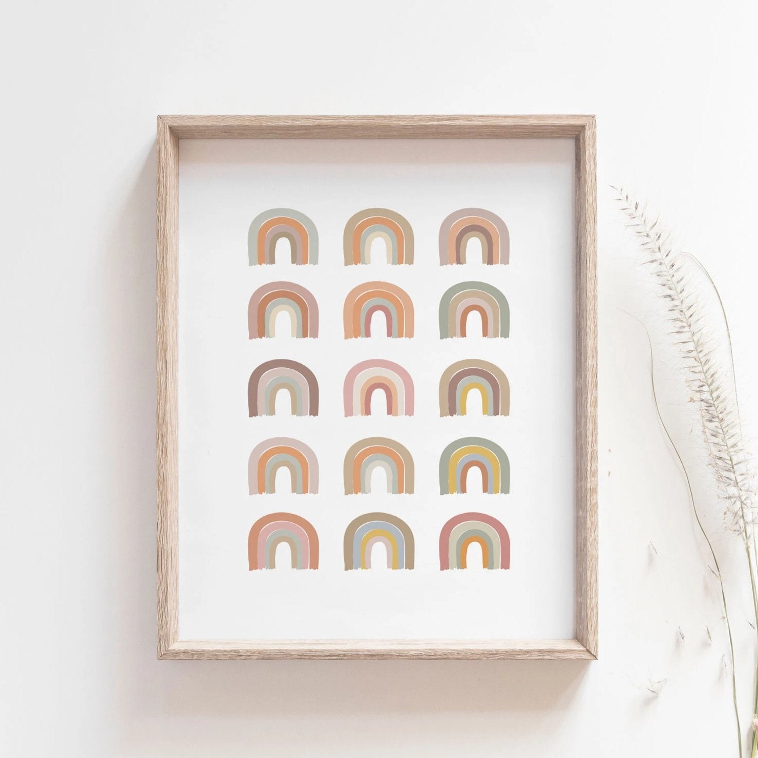 Rainbow Pattern Boho Nursery Wall Art Decor - Earthy Colors