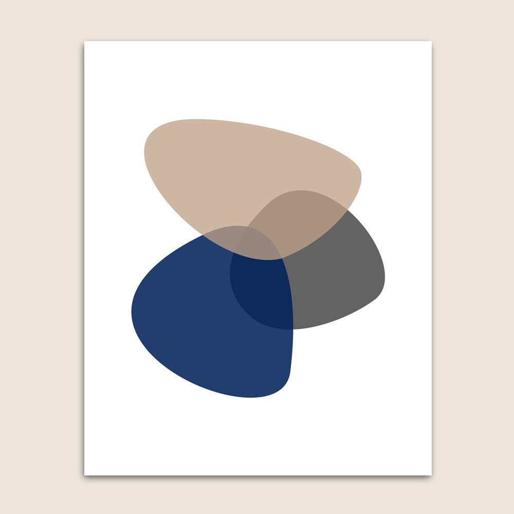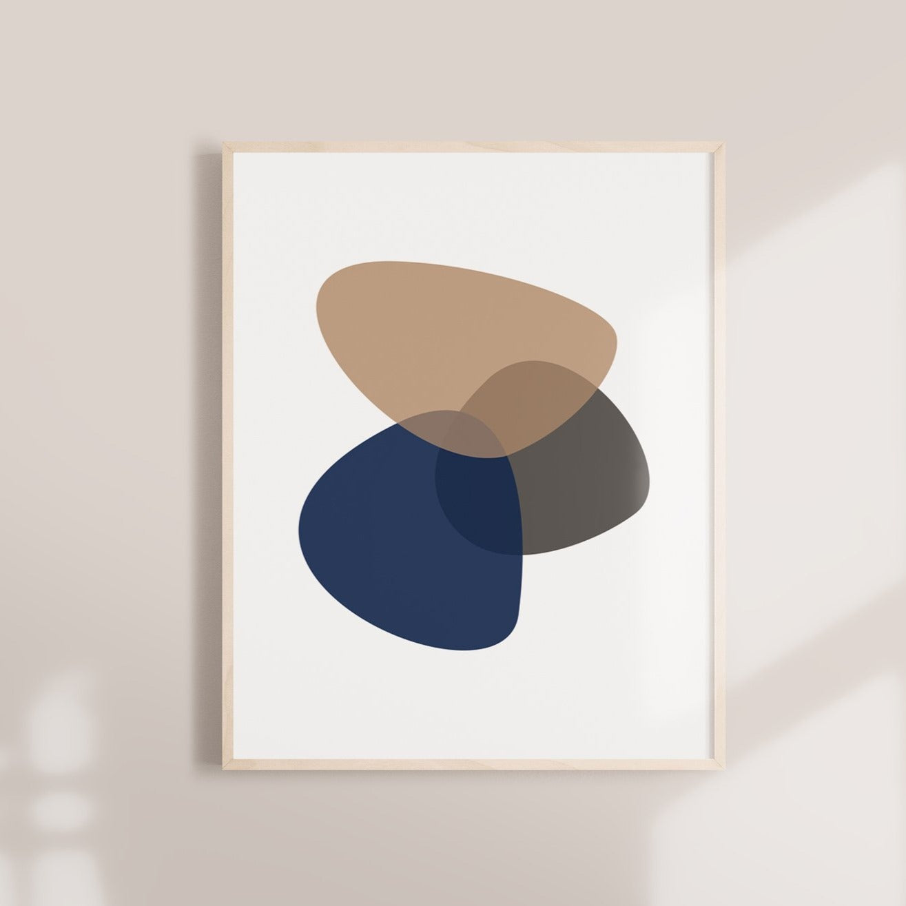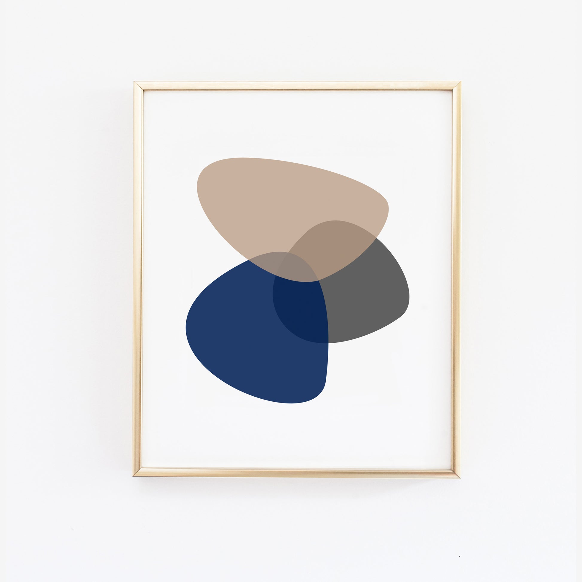 Mid Century Abstract Neutral Navy Taupe Shapes Art