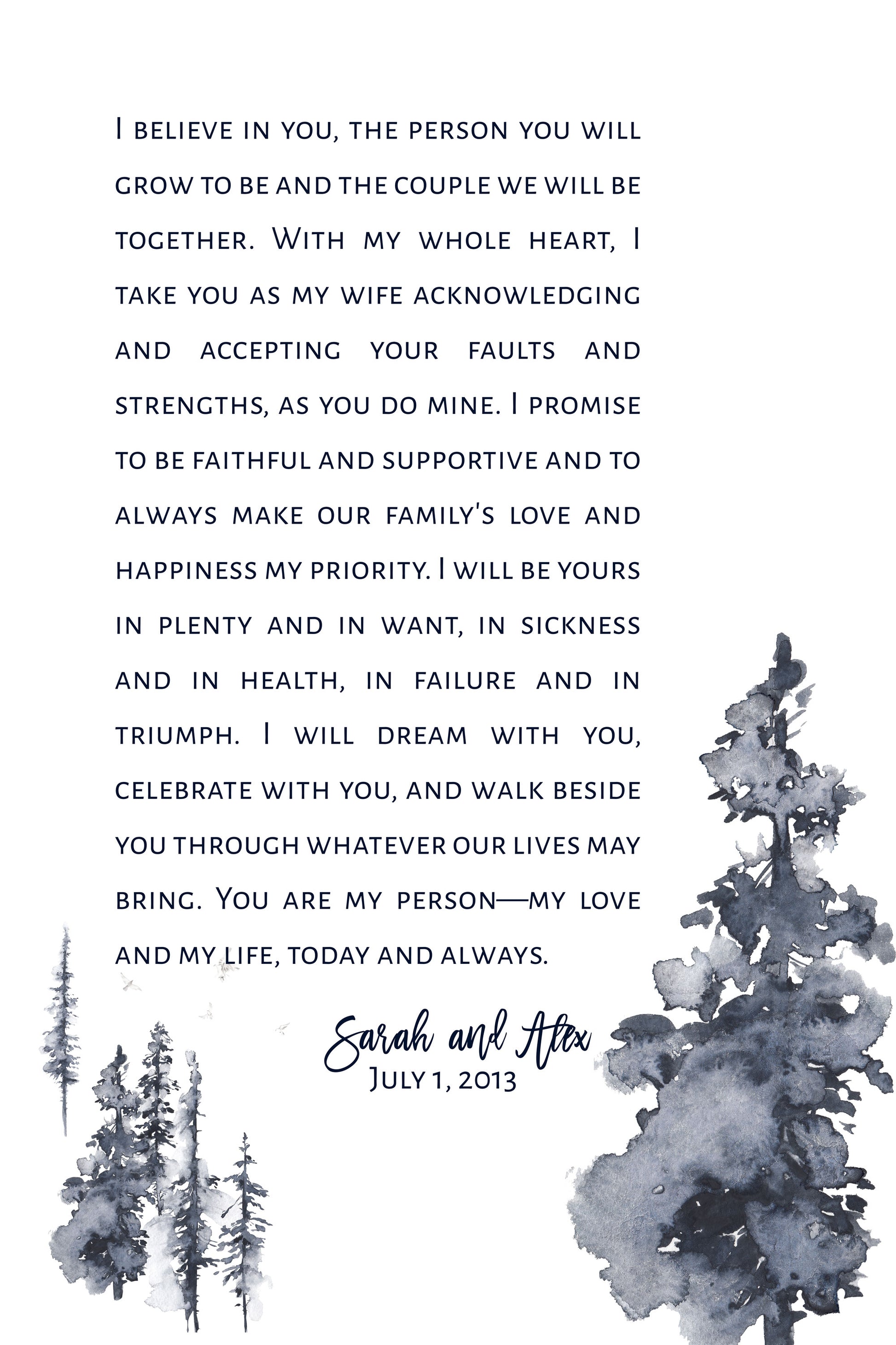 Don't forget to include the vows in the "custom notes". The design will have to be altered according to the vows. Also include the date of the wedding or any other details such as color changed.