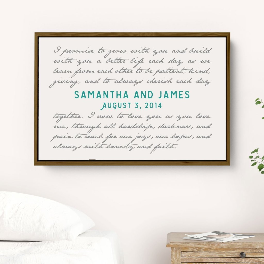 Wedding Vow Art Framed on Canvas personalized with Names and Date